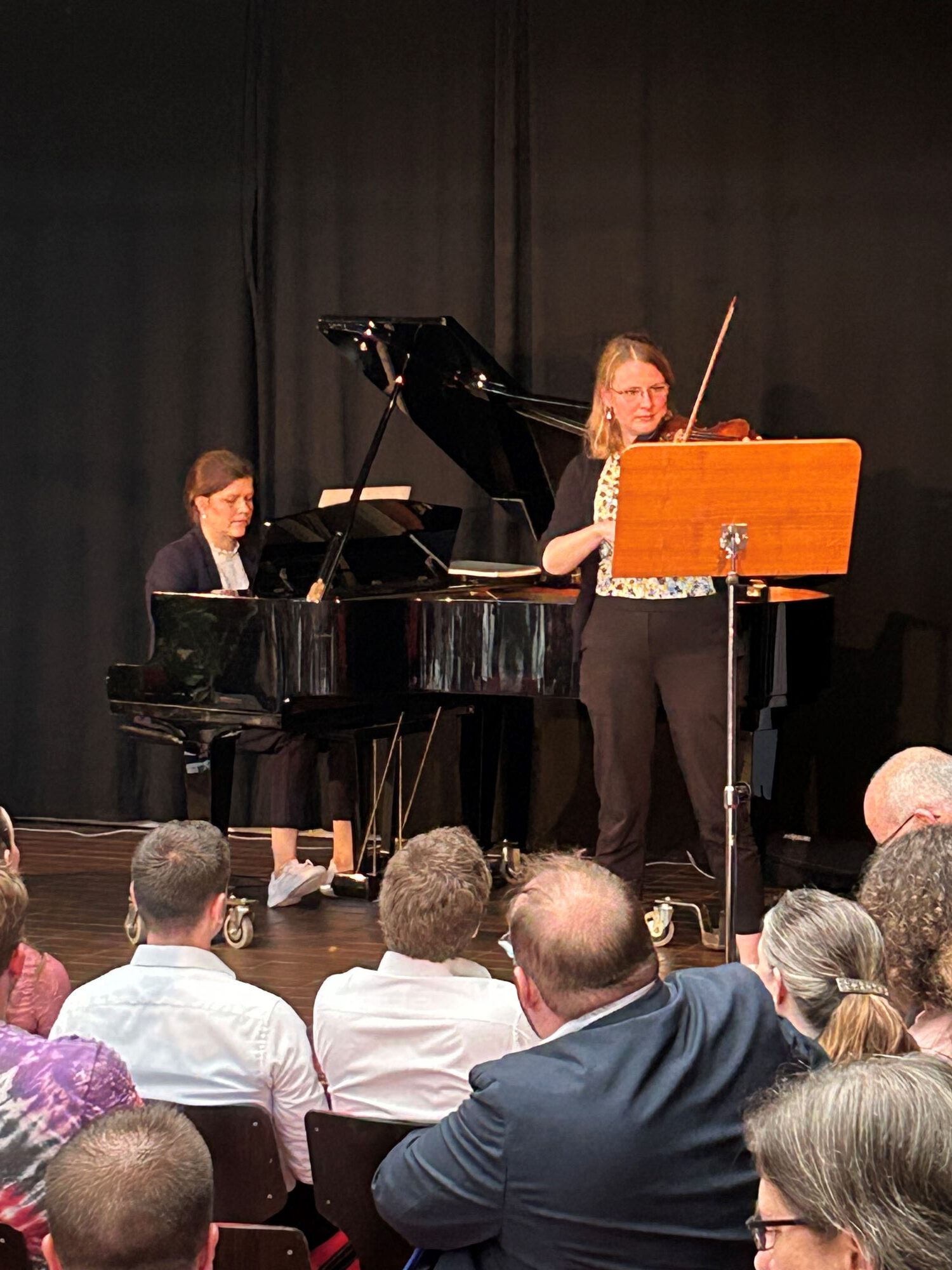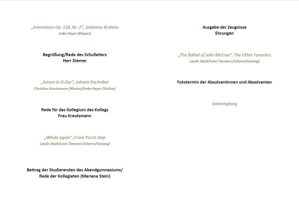 Musikalisch gestaltet wurde die Veranstaltung von Musiklehrerin Imke Heyer, Christina Kreutzmann sowie den Kollegiaten Laszlo Stark und Leon Tiemann.