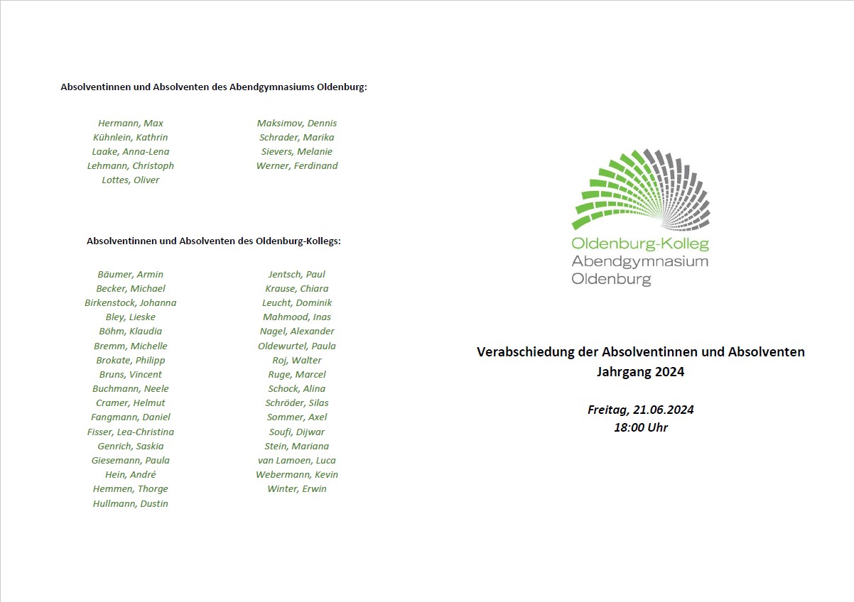 Am vergangenen Freitag, 21.06.2024, feierte das Oldenburg-Kolleg seine diesjährigen Absolventinnen und Absolventen auf einer Entlassungsfeier mit anschließendem Ball in den Räumen des Oldenburg-Kollegs.