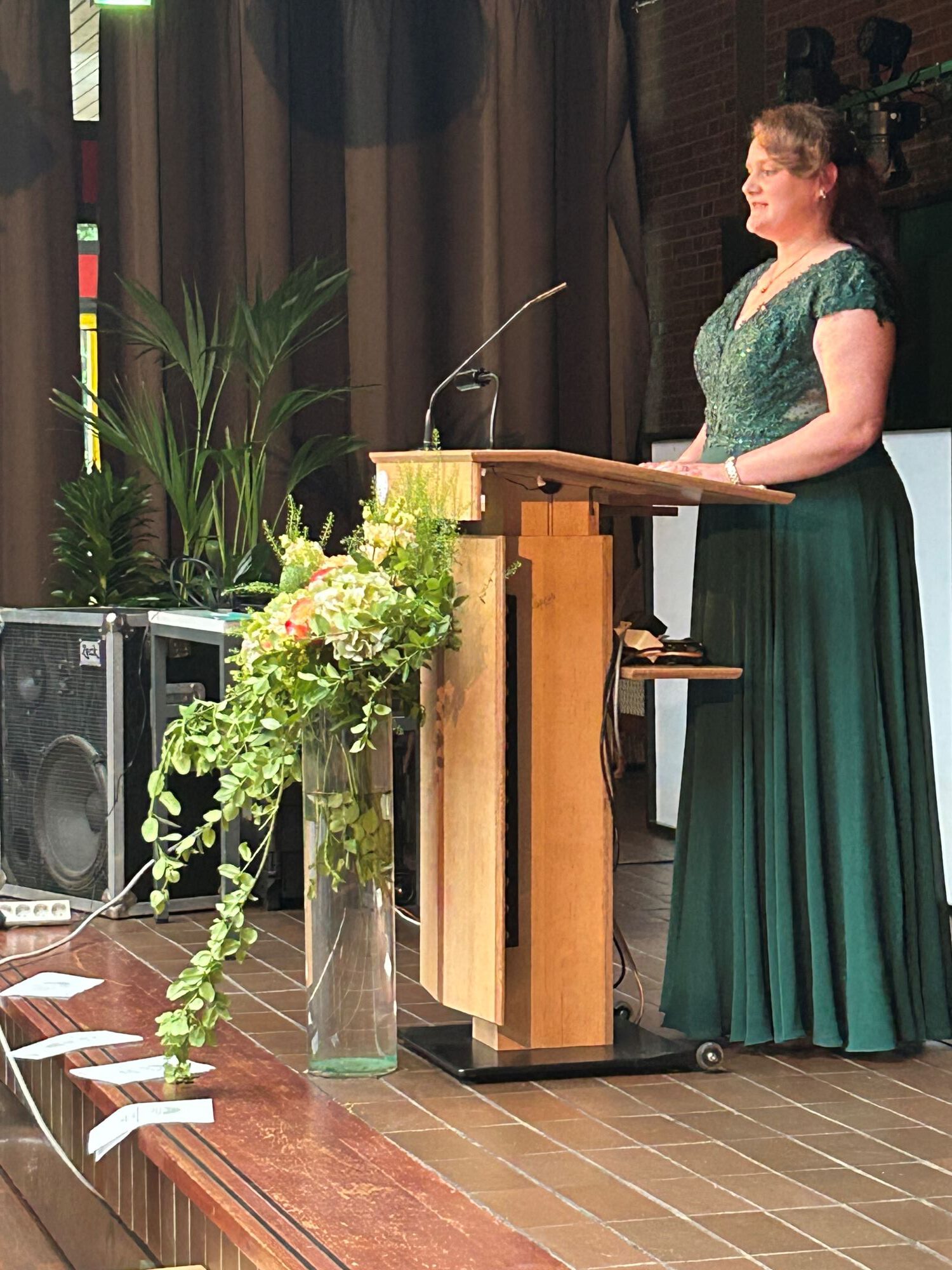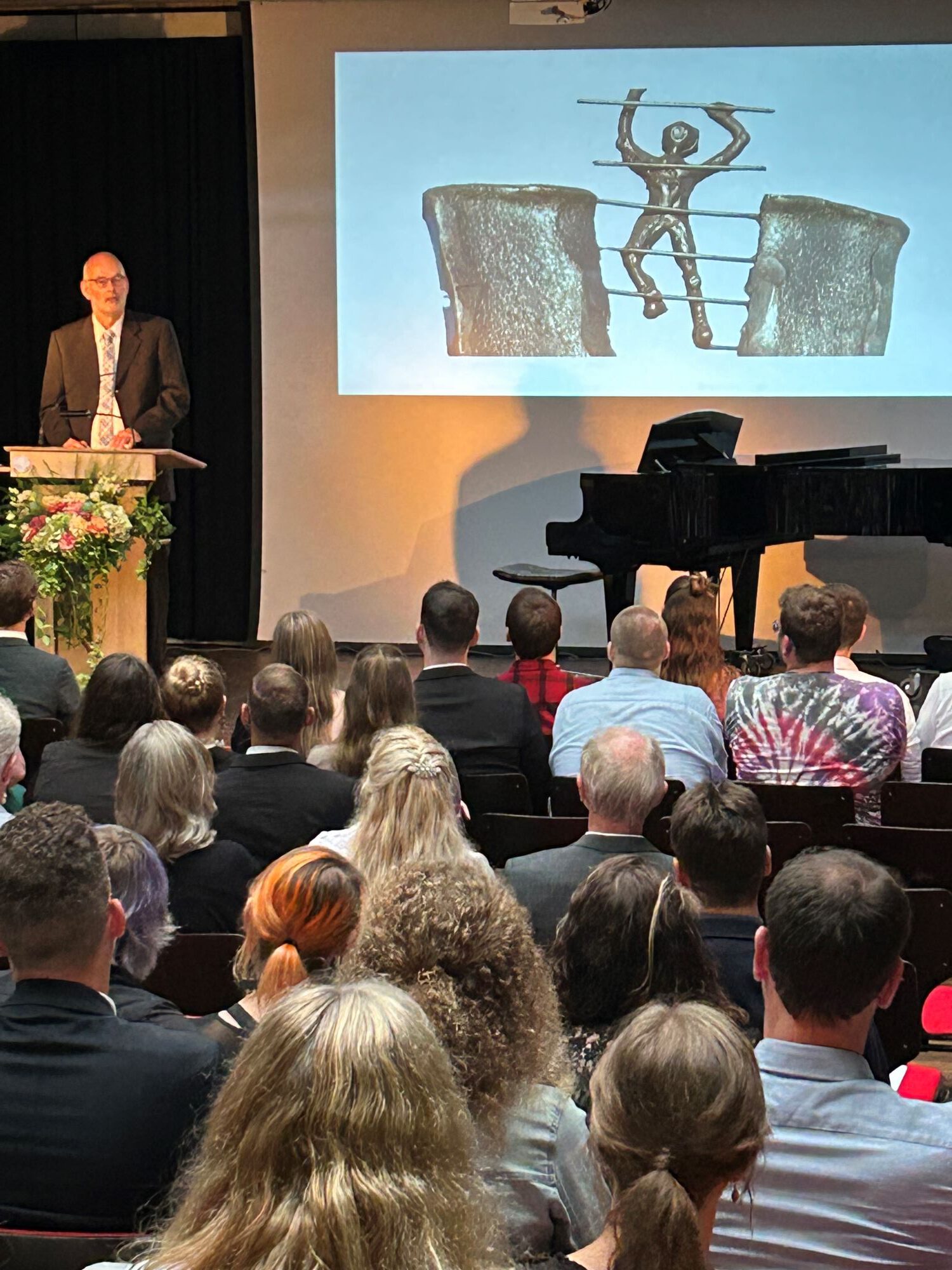 Schulleiter Herr Diemer ging in seiner Rede ebenso wie Frau Kreutzmann als Rednerin für das Kollegium des Oldenburg-Kollegs vor allem auf die nun anstehenden neuen Herausforderungen auf dem weiteren Lebens- und Bildungsweg des Abschlussjahrgangs ein. Kollegiatin Mariana Stein erinnerte in ihrem Beitrag an prägende Ereignisse in den drei Jahren des Schulbesuchs am Kolleg und appellierte an die Mitabsolventinnen und -absolventen, mutig weitere Lebensschritte in Angriff zu nehmen.